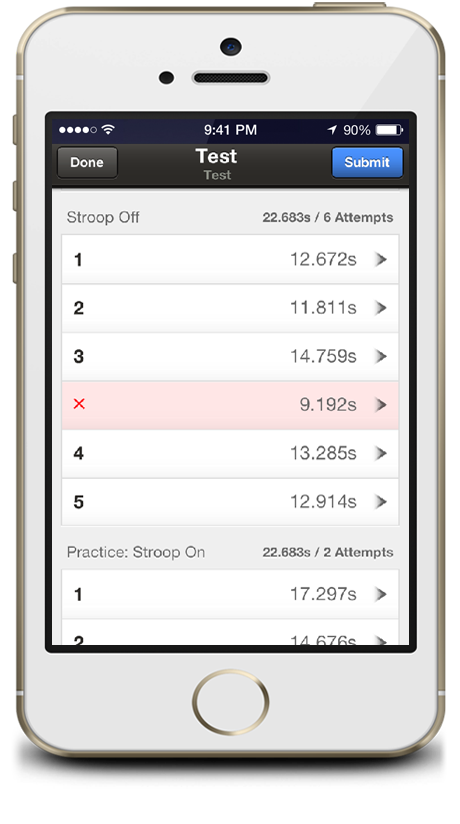 EncephalApp is a series of applications designed to evaluate patients with liver disease; the first of which is a Stroop task.